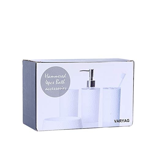 Brand: London BoutiqueColor: WhiteFeatures: The bathroom accessory set includes Soap Dispenser, Toothbrush Holder, Tumbler and Soap dish The bathroom accessory set comes in 3 colour, black brown and white, in a classic shape, suitable for all kind of bathrooms. Distinctive handcrafted, Texture Streamlined Design, made of durable plastic, Food grade PP material, clear see through, light weight, classic shape contemporary style Stainless steel pump unscrews easily for refilling and perfect for liquid soap, bath gels, shampoos, conditioners or moisturizing creams and lotions. Size: Soap dispenser: H18*D7.8cm; Soap dish: L13*W13*H3.2cm; Toothbrush Holder and Tumbler: H12.2*D7.5cm Details: The bathroom accessory set comes in clear black, clear brown and clear white colour. They are suitable for any colour theme in your bathroom. The bathroom accessory set will get your bathroom organised, it is suitable for big and small bathrooms. The set are made a high graded strong plastic, give the bathroom a contemporary touch.Package Dimensions: 8.7 x 5.9 x 4.2 inches