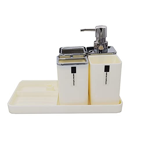 Brand: London BoutiqueColor: WhiteFeatures: 【QUALITY MATERIAL】 London Boutique bathroom accessories are made from premium quality non-toxic plastic and stainless steel covers to ensure long durability, no rust, and healthy use 【5 PIECES TRAY SET】 London Boutique bathroom accessories tray come with color matching pieces set: a soap dish, soap dispenser, tumbler, and toothbrash holder. You can get all bathroom essentials in the same purchase 【CONTEMPORARY DESIGN】 This bathroom accessories set is designed to combine modernity with convenience. You can make the best use out of your bathroom accessories while displaying modern decorative accessories 【MULTI COLORS AVAILABLE】 The color matching accessories set comes in a variety of colors from blue and pink to white, to match any bathroom tiles and ceramic wear 【EASY TO USE】 London Boutique bathroom accessories set come assembeled for an easy and everyday use and fast cleaning. The tray is in the perfect size to fit on any bathroom counter Package Dimensions: 7.3 x 6.5 x 3.9 inches