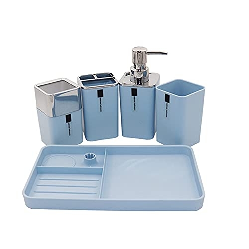 Brand: London BoutiqueColor: BlueFeatures: 【QUALITY MATERIAL】 London Boutique bathroom accessories are made from premium quality non-toxic plastic and stainless steel covers to ensure long durability, no rust, and healthy use 【5 PIECES TRAY SET】 London Boutique bathroom accessories tray come with color matching pieces set: a soap dish, soap dispenser, tumbler, and toothbrash holder. You can get all bathroom essentials in the same purchase 【CONTEMPORARY DESIGN】 This bathroom accessories set is designed to combine modernity with convenience. You can make the best use out of your bathroom accessories while displaying modern decorative accessories 【MULTI COLORS AVAILABLE】 The color matching accessories set comes in a variety of colors from blue and pink to white, to match any bathroom tiles and ceramic wear 【EASY TO USE】 London Boutique bathroom accessories set come assembeled for an easy and everyday use and fast cleaning. The tray is in the perfect size to fit on any bathroom counter Package Dimensions: 11.2 x 6.5 x 3.9 inches
