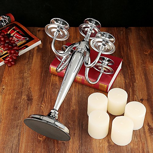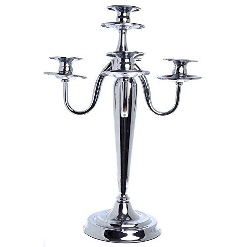 London Boutique Candlesticks Holders Candelabra Silver Solid Brass Decorative Centerpieces Wedding Birthday Gift 3 Arms or 5 Arms (5 Arms)