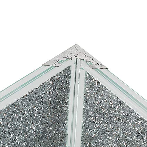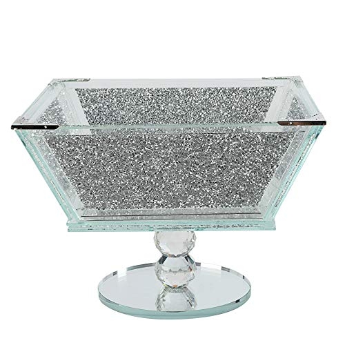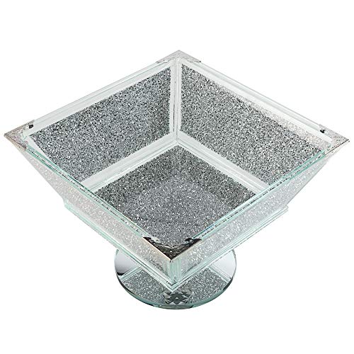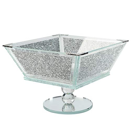 Brand: London BoutiqueColor: Silver and ClearFeatures: Size: Square top L26cm, High including the leg 19cm Sparkle the Kitchen or dinning table — The crystal filled Fruit bowl centre piece will bring a touch of chic and sparkle to your kitchen; it can also be used as centre piece in the dinner table Square top —The fruit bowl has a large open square top Removable base — The base of the fruit bowl can be unscrewed and removed, the leg raise the fruit bowl up, with a mirror affected base, reflecting light Perfect Gift — It is beautifully presented in white box. Make a perfect gift for anyone, specially bling bling lovers Details: This crystal Fruit bowl is bigger than normal size, it can be used for fruit or anything you like. It filled with Crush Diamond on all the sides in the between of the double wall. The bottom can be unscrewed, easy for storage. The Bling Bling storage jar will add on sparkle in your kitchen and light up your kitchen in anytime of the day.Package Dimensions: 12.8 x 12.6 x 7.1 inches