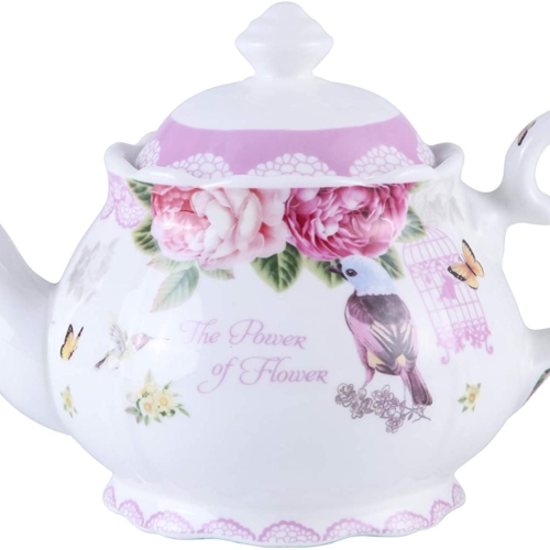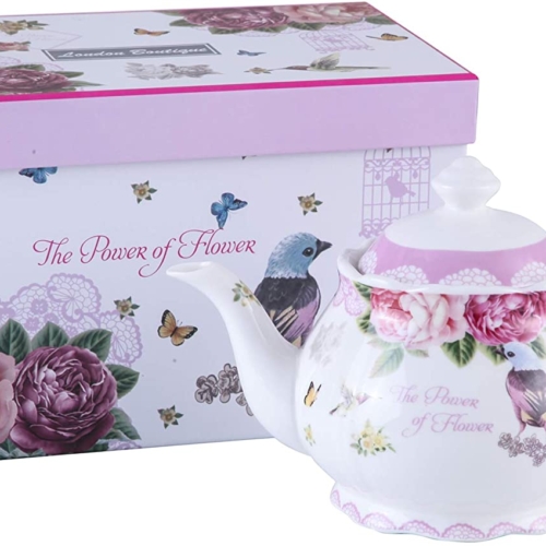 Brand: London Boutique Color: Teapot Bird Rose Butterfly Features: Teapot sets come as 1 teapot with lid, 1 sugar bowl with lid and 1 Cream Milk Jug Teapot with build in filter at end of the sprout, suitable for loose tea. Teapot Sugar Bowl and Cream Milk Jug in white colour with shabby chic vintage design in blue and pink colour. Teapot sugar Bowl and Milk Jug can be used separatly, in a same design lovely gift box, ideal for gift and present Capacity of the Teapot 800ML. Size of the teapot: H13cm,diamater on top is 9cm. Binding: Kitchen & Home