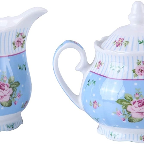 Brand: London Boutique Color: Cream & Sugar Set Rose Blue Features: Teapot sets come as 1 teapot with lid, 1 sugar bowl with lid and 1 Cream Milk Jug Teapot with build in filter at end of the sprout, suitable for loose tea. Teapot Sugar Bowl and Cream Milk Jug in white colour with shabby chic vintage design in blue and pink colour. Teapot sugar Bowl and Milk Jug can be used separatly, in a same design lovely gift box, ideal for gift and present Capacity of the Teapot 800ML. Size of the teapot: H13cm,diamater on top is 9cm. Binding: Kitchen & Home