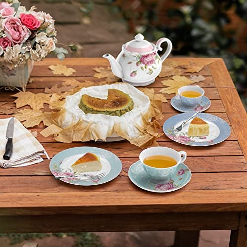 Brand: London BoutiqueColor: Black, Pink, Blue, TurquoiseFeatures: Size — 7.5inches dessert plates in same design but 4 deifferent colours The plates set comes 4 plates with gift box, 4 Colours: Black, Turquoise, Blue and Pink; Vintage British Shabby Chic design in glazed white china Food Safe — No lead, meet food safety standard. Made with premium quality of porcelain, no bone ash. Bright white colour give it elegant touch. Microwave and Dishwasher safe Perfect Gift — Taylor made gift box matching the design of the cake stand, perfect gift idea for the loved ones, or treat yourself Premier Qulity — Made with premier quality of porcelain, no animal bone ash, suitable for vegan and vegetarian. Glazed white Chinaware, with vitage shabby chic flora rose design EAN: 5060777559922