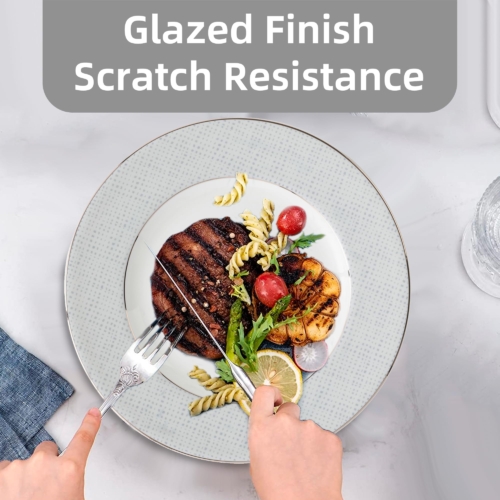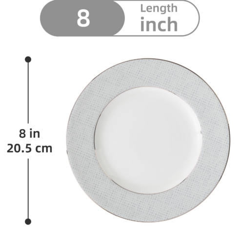 Brand: London BoutiqueColor: Grey WhiteFeatures: 【4-Piece Plate Set】The ceramic plates Set for 4 people have 2 options, large dinner plates (10.5 inches), and small dinner plates (8 inches). The small plates can be used as Dinner Plates Dessert Plates Salad Plates 【Handcrafted】The plates and bowls set are in classic design with Elegant Silver Banding and Grey Rim that adds a touch of sophistication to your dining table. Dinner plates and salad plates are all featured a beautiful Classic grey plate set pattern with stunning silver banding for that extra special touch. 【Scratch Resistance】 The plate sets for 4 are made from premium quality materials to ensure long-lasting durability. The highly refined premium porcelain for delicate structure and outperformed, chipping resistance and scratch resistance for durable serving. The dinner set is suitable for everyday use for home or restaurants 【Elegant Food Safe】 The dinner set for 4 are food safe, BPA free, non-tonix. The large dinner plates and small dinner plates are lightweight, durable, without animal ash as raw material. Perfect for everyday use or special occasions Dishwasher safe for easy cleaning and convenience model number: grey silverPart Number: CLassic Gray Dinner platesDetails: Upgrade your dining experience with this premium quality china dinner plates for 4 people. This classic design tableware is perfect for everyday use or special occasions. The dinner plates set are made from high-quality materials to ensure long-lasting durability. The elegant design will add a touch of sophistication to your dining table, making it perfect for dinner parties and gatherings.EAN: 5060777550967Package Dimensions: 10.6 x 10.6 x 3.9 inches