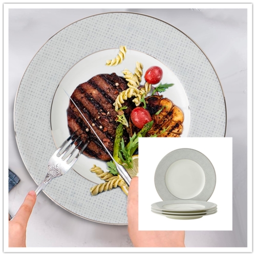 Brand: London BoutiqueColor: Grey WhiteFeatures: 【4-Piece Plate Set】The ceramic plates Set for 4 people have 2 options, large dinner plates (10.5 inches), and small dinner plates (8 inches). The small plates can be used as Dinner Plates Dessert Plates Salad Plates 【Handcrafted】The plates and bowls set are in classic design with Elegant Silver Banding and Grey Rim that adds a touch of sophistication to your dining table. Dinner plates and salad plates are all featured a beautiful Classic grey plate set pattern with stunning silver banding for that extra special touch. 【Scratch Resistance】 The plate sets for 4 are made from premium quality materials to ensure long-lasting durability. The highly refined premium porcelain for delicate structure and outperformed, chipping resistance and scratch resistance for durable serving. The dinner set is suitable for everyday use for home or restaurants 【Elegant Food Safe】 The dinner set for 4 are food safe, BPA free, non-tonix. The large dinner plates and small dinner plates are lightweight, durable, without animal ash as raw material. Perfect for everyday use or special occasions Dishwasher safe for easy cleaning and convenience model number: grey silverPart Number: CLassic Gray Dinner platesDetails: Upgrade your dining experience with this premium quality china dinner plates for 4 people. This classic design tableware is perfect for everyday use or special occasions. The dinner plates set are made from high-quality materials to ensure long-lasting durability. The elegant design will add a touch of sophistication to your dining table, making it perfect for dinner parties and gatherings.EAN: 5060777550967Package Dimensions: 10.6 x 10.6 x 3.9 inches