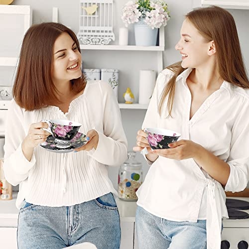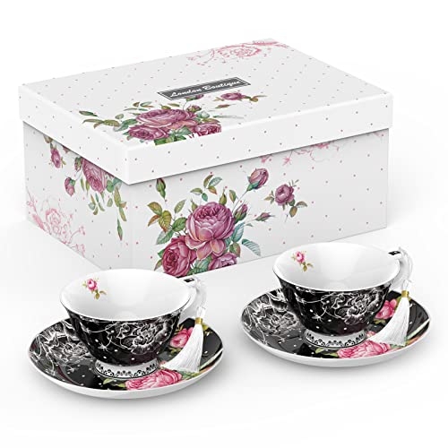 Brand: London BoutiqueColor: BlackFeatures: The Package: 2teacups, 2 saucers and a gift box; Vintage British Shabby Chic design in glazed white china Size and Capacity — Cup: 200ml 7oz, 5×2.4inches; Saucer: 15.5cm 6inches Food Safe — No lead, meet food safety standard. Made with premium quality of porcelain, no bone ash. Bright white colour give it elegant touch. Perfect Gift — Taylor made gift box matching the design of the teacup and saucer set, perfect gift idea for the loved ones, or treat for yourself Premier Quality — Made with premier quality of porcelain, no animal bone ash, suitable for vegan and vegetarian. Glazed white Chinaware, with vintage shabby chic flora rose design; Microwave and Dishwasher safe Binding: Kitchen & HomeEAN: 5060777559830