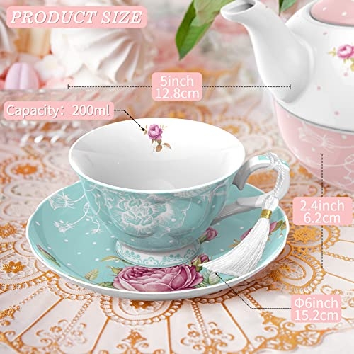 Brand: London BoutiqueColor: TurquoiseFeatures: The Package: 2teacups, 2 saucers and a gift box; Vintage British Shabby Chic design in glazed white china Size and Capacity — Cup: 200ml 7oz, 5×2.4inches; Saucer: 15.5cm 6inches Food Safe — No lead, meet food safety standard. Made with premium quality of porcelain, no bone ash. Bright white colour give it elegant touch. Perfect Gift — Taylor made gift box matching the design of the teacup and saucer set, perfect gift idea for the loved ones, or treat for yourself Premier Quality — Made with premier quality of porcelain, no animal bone ash, suitable for vegan and vegetarian. Glazed white Chinaware, with vintage shabby chic flora rose design; Microwave and Dishwasher safe Binding: Kitchen & HomeEAN: 5060777559854