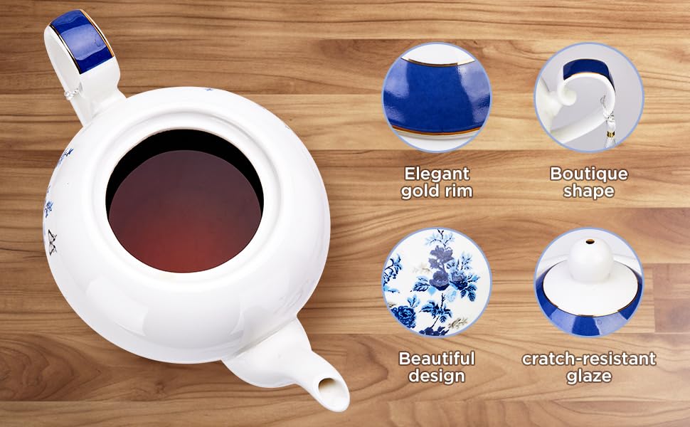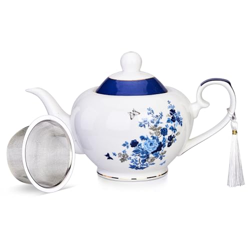 Brand: London BoutiqueColor: Rose Butterfly NavyFeatures: Loose Tea Infuser Teapots — Enjoy a relaxing cup of tea with our elegant teapot with infuser , designed with gold edge trim and a removable stainless tea strainers for loose tea. It is suitable for loose tea and tea bags. 【Size and Capacity 】Our ceramic teapot features an easy grab handle and a stable secured lid, ensuring a comfortable and convenient pouring experience. 700ml capacity make it a perfect small teapot for 2 or for intimate gatherings. 【Food Safe】The teapots set meet food safety standard. Made with premium quality and food grated porcelain, which is free from lead and toxic. The tea pots is suitable for vegan and vegetarian, it is bone china quality but without animal ash as material. 【Convenient】 Loose Leaf teapot is Microwave and Dishwasher safe, scratch and chip resistant Teapot set Crafted with a classic and timeless design, our teapot adds a touch of sophistication to any tea-drinking occasion, whether it’s for personal use or as a thoughtful gift. With its non-dripping spout and gold edge trim, our teapot combines functionality and style, making it a perfect gift for tea enthusiasts. Binding: Kitchen & Homemodel number: 728-4Part Number: 728-4EAN: 5060777550875Package Dimensions: 10.4 x 7.0 x 6.9 inches