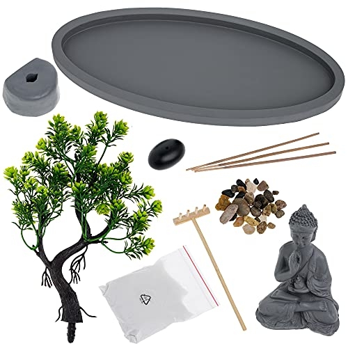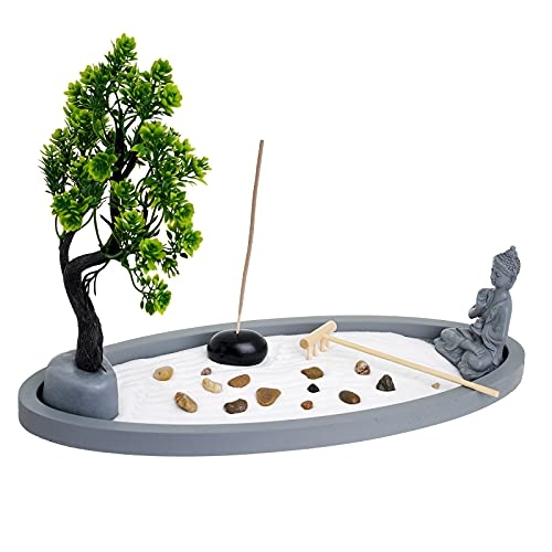 Brand: London BoutiqueFeatures: 【DECORATIVE BUDDHA FIGURE】 This buddha statue tray ornament represents different religious cultures, with your selection you have an assembled ornament which will add style and taste to any room in your home 【EXQUISITE DESIGN】 An elegant sitting buddha statue representing calmness and serenity, accompanied by a lotus shaped candle holder with sparkling white sand around, removable resin tree, a wooden rack and brownish perpetual stones 【CALMNESS AND PEACE】 The sand represents sea, the stone represents mountain, wooden rakes can be used to take care of your garden sand tray. The composition is simple and the decoration effect is beautiful and unique. As a meditation tool, It’s great for contemplation and practicing mindfulness 【IDEAL LOCATIONS】 This buddha statue ornament could be widely used at home in the living room over a table decoration craft, in your bedroom or at the work desk, It can be used as a means of meditation to clear all stress and mental unrest. Moreover it will perfectly suit spa areas in hotels and resorts 【MEMORABLE GIFT】 This Zen garden is a perfect gift for family, friends or coworkers. It’s not only a home décor piece, but also a way to show affection and peace to your manager and colleagues. When displayed and used in the workplace, this ornament can help relieve stress and enhance creativity Binding: Kitchen & HomeEAN: 5060777550707Package Dimensions: 13.8 x 6.7 x 2.8 inches