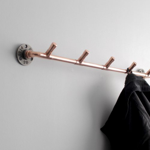 Industrial copper pipe coat hooks – Wall mounted with iron fixings