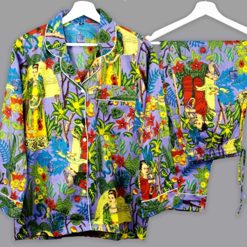 Long Cotton M Size PJ Set With Pouch – Purple Frida Kahlo