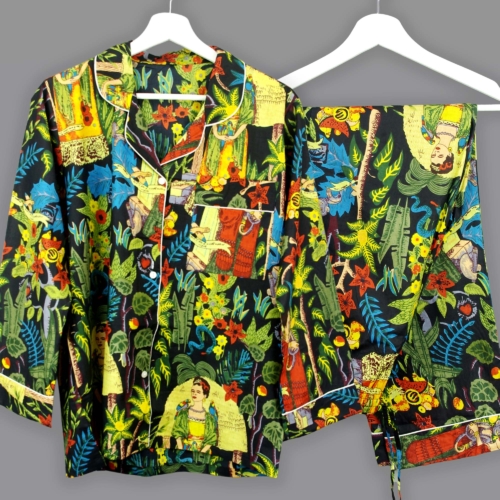 Long Cotton S Size PJ Set With Pouch – Black Frida Kahlo