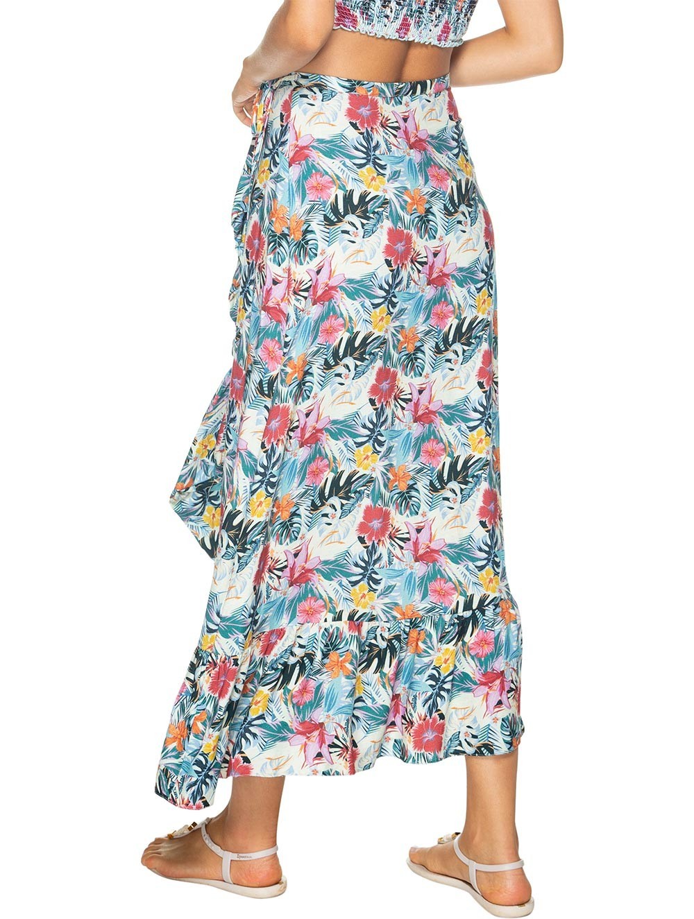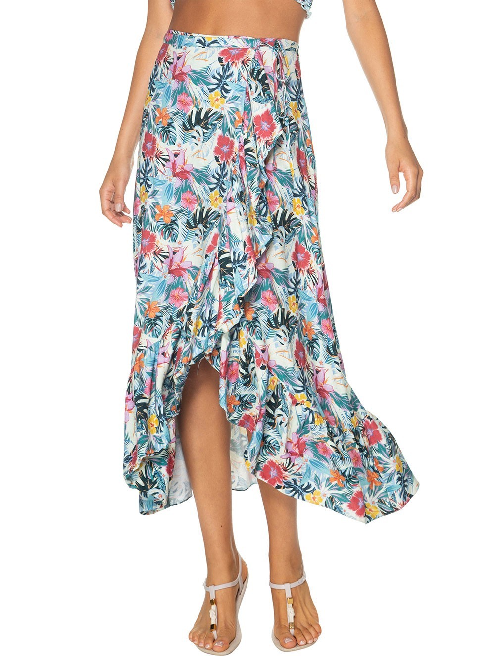 Adopt a chic and relaxed style with this asymmetric and floral maxi skirt