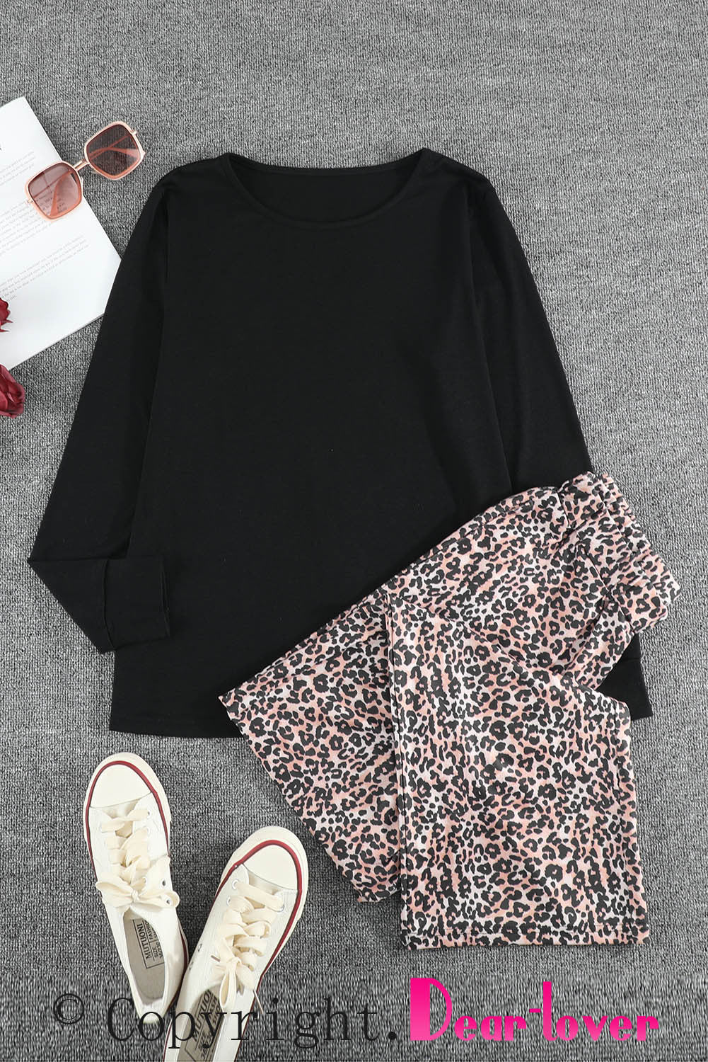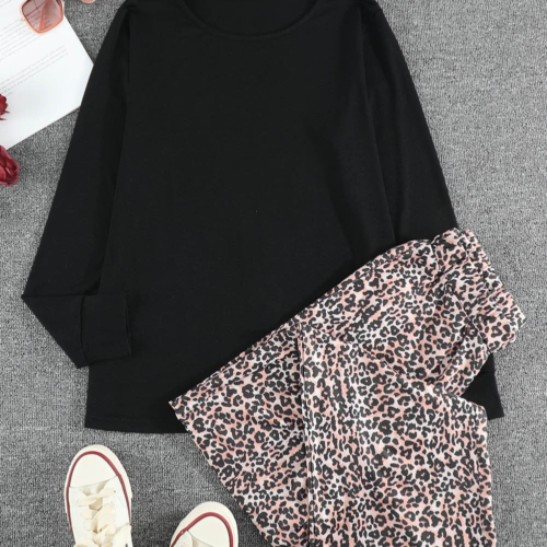 Long Sleeve Top and Leopard Print Pants Lounge Set