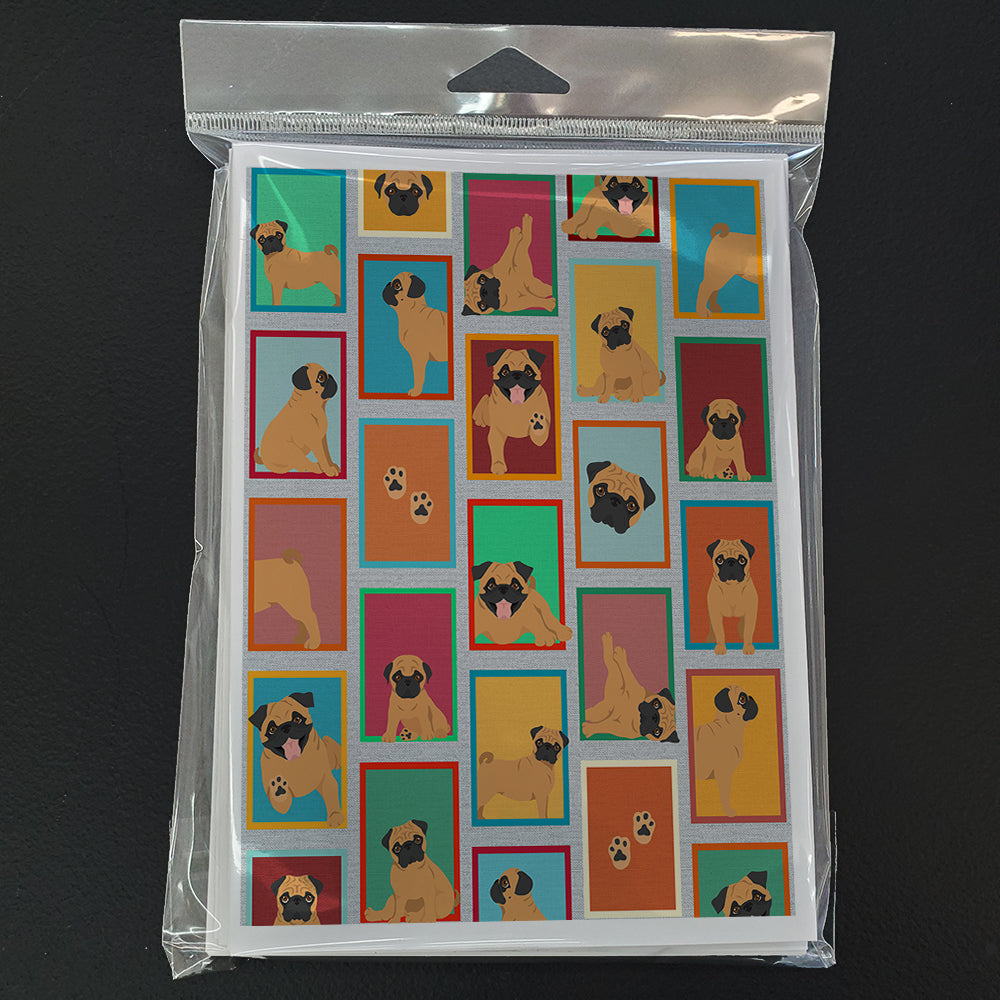 Lots of Apricot Pug Greeting Cards Pack of 8