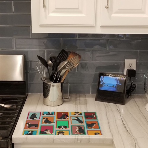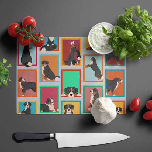 Glass Cutting Board featuring breed specific Bernese Mountain Dog artwork. Introduce your kitchen to the vibrant, large Decorative Glass Cutting Board from Caroline’s Treasures. Crafted from resilient tempered glass, this board is not only a utilitarian necessity but also a colorful art piece. With its generous dimensions of 15 inches in height and 12 inches in length, it offers ample space for all your cutting needs. Every piece showcases captivating artwork from distinguished artists, bringing an aesthetic edge to your kitchen. Beyond its attractive design, this cutting board ensures your countertop stays pristine and unscathed, owing to its heat-resistant properties. Engineered with user convenience in mind, it features non-skid feet for stability, and rounded corners for additional safety. Its robust construction renders it virtually unbreakable, guaranteeing longevity. The board comes with protective feet bumpers, maintaining its position during use. This product is recommended to be hand washed only. Proudly printed and assembled in the United States, this cutting board exemplifies superior craftsmanship. With Caroline’s Treasures’ Decorative Glass Cutting Board, you’re investing in a blend of functionality and artistic flair.
