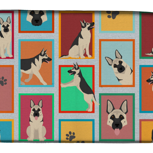 Dish Drying Mat featuring breed specific German Shepherd artwork. Say goodbye to messy countertops and soggy dish towels with our innovative dish drying mat. Our high-quality dish drying pad is designed to keep your countertops dry while offering a stylish and efficient solution. Whether you’re air drying dishes, glasses, stemware, silverware, pots, pans, bottles, or even fruits and vegetables, our dish mat is the perfect choice. The 14 inches x 22 inches size fits most counters and dish drying racks, and the non-slip design ensures stability. Made with water-absorbent polyester and a polyurethane foam insert, our dish drying mat is not only functional but also durable. It’s machine washable and printed in the USA for long-lasting use. The beautiful artwork adds flair to your kitchen decor, making it a perfect housewarming gift or present for any occasion. Upgrade your kitchen experience with our absorbent and versatile dish drying mat.