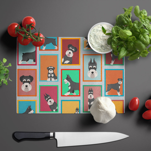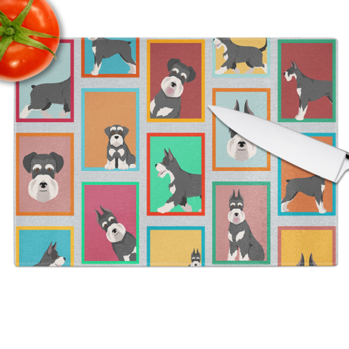 Lots of Black and Silver Schnauzer Glass Cutting Board
