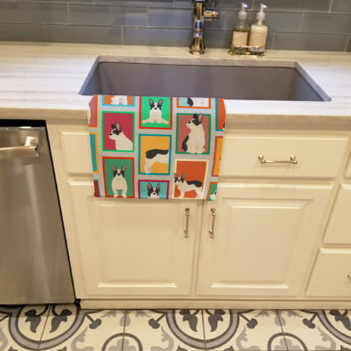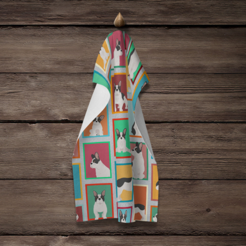 Kitchen Towel featuring breed specific French Bulldog artwork. Experience the perfect blend of aesthetic appeal and functional excellence with our Plush Velour Kitchen Towels. These are not your ordinary decorative kitchen towels that gather dust. Instead, they are designed to be as practical as they are stylish. The front layer of our towel is constructed from a minky plush polyester, known for its durability and color retention. Unlike conventional kitchen towels, the artwork on our towels is dyed directly into the fabric, ensuring vibrant colors that last. Polish your glassware to a brilliant sparkle using the plush front side of the towel. Flip to the back, crafted from 100% cotton terry loop, to exploit its exceptional absorbency for drying dishes or wiping down counters. Our kitchen towels redefine the concept of functional art, offering lasting quality that maintains the towel’s shape over time. Measuring 15 inches by 25 inches and weighing 2.3 lbs per dozen, these towels deliver an overwhelming sensory experience with their soft, plush, and smooth texture. The edges are meticulously finished with binding, enhancing their durability and visual appeal. For your convenience, these towels are machine washable and can be dried on low heat. After the first wash, the top fabric becomes even softer and fluffier, eliminating the need for ironing. Treat your kitchen to the luxury and functionality it deserves with our plush velour kitchen towels.
