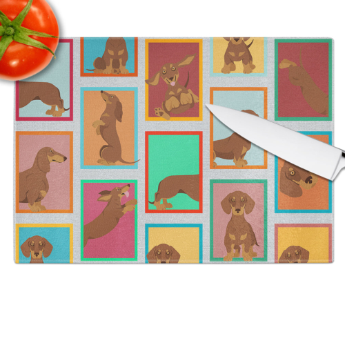 Glass Cutting Board featuring breed specific Dachshund artwork. Introduce your kitchen to the vibrant, large Decorative Glass Cutting Board from Caroline’s Treasures. Crafted from resilient tempered glass, this board is not only a utilitarian necessity but also a colorful art piece. With its generous dimensions of 15 inches in height and 12 inches in length, it offers ample space for all your cutting needs. Every piece showcases captivating artwork from distinguished artists, bringing an aesthetic edge to your kitchen. Beyond its attractive design, this cutting board ensures your countertop stays pristine and unscathed, owing to its heat-resistant properties. Engineered with user convenience in mind, it features non-skid feet for stability, and rounded corners for additional safety. Its robust construction renders it virtually unbreakable, guaranteeing longevity. The board comes with protective feet bumpers, maintaining its position during use. This product is recommended to be hand washed only. Proudly printed and assembled in the United States, this cutting board exemplifies superior craftsmanship. With Caroline’s Treasures’ Decorative Glass Cutting Board, you’re investing in a blend of functionality and artistic flair.