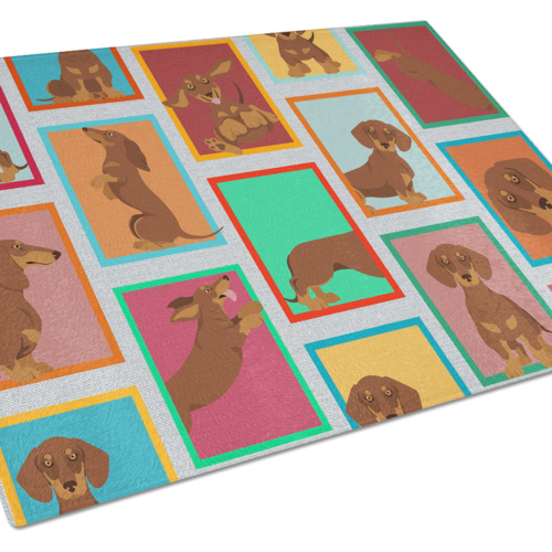 Glass Cutting Board featuring breed specific Dachshund artwork. Introduce your kitchen to the vibrant, large Decorative Glass Cutting Board from Caroline’s Treasures. Crafted from resilient tempered glass, this board is not only a utilitarian necessity but also a colorful art piece. With its generous dimensions of 15 inches in height and 12 inches in length, it offers ample space for all your cutting needs. Every piece showcases captivating artwork from distinguished artists, bringing an aesthetic edge to your kitchen. Beyond its attractive design, this cutting board ensures your countertop stays pristine and unscathed, owing to its heat-resistant properties. Engineered with user convenience in mind, it features non-skid feet for stability, and rounded corners for additional safety. Its robust construction renders it virtually unbreakable, guaranteeing longevity. The board comes with protective feet bumpers, maintaining its position during use. This product is recommended to be hand washed only. Proudly printed and assembled in the United States, this cutting board exemplifies superior craftsmanship. With Caroline’s Treasures’ Decorative Glass Cutting Board, you’re investing in a blend of functionality and artistic flair.
