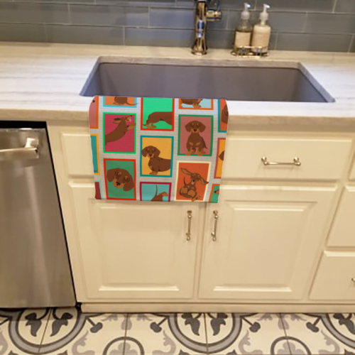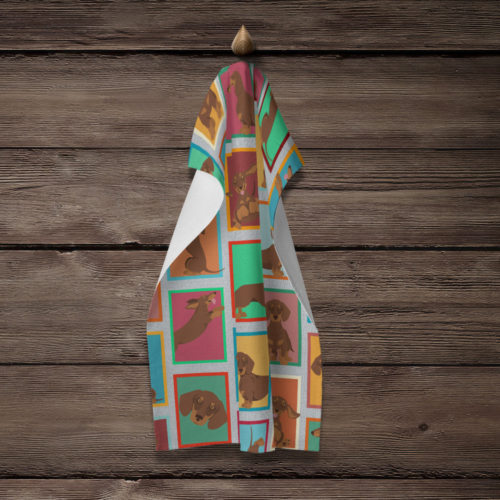 Kitchen Towel featuring breed specific Dachshund artwork. Experience the perfect blend of aesthetic appeal and functional excellence with our Plush Velour Kitchen Towels. These are not your ordinary decorative kitchen towels that gather dust. Instead, they are designed to be as practical as they are stylish. The front layer of our towel is constructed from a minky plush polyester, known for its durability and color retention. Unlike conventional kitchen towels, the artwork on our towels is dyed directly into the fabric, ensuring vibrant colors that last. Polish your glassware to a brilliant sparkle using the plush front side of the towel. Flip to the back, crafted from 100% cotton terry loop, to exploit its exceptional absorbency for drying dishes or wiping down counters. Our kitchen towels redefine the concept of functional art, offering lasting quality that maintains the towel’s shape over time. Measuring 15 inches by 25 inches and weighing 2.3 lbs per dozen, these towels deliver an overwhelming sensory experience with their soft, plush, and smooth texture. The edges are meticulously finished with binding, enhancing their durability and visual appeal. For your convenience, these towels are machine washable and can be dried on low heat. After the first wash, the top fabric becomes even softer and fluffier, eliminating the need for ironing. Treat your kitchen to the luxury and functionality it deserves with our plush velour kitchen towels.