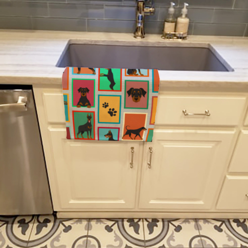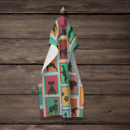 Kitchen Towel featuring breed specific Doberman Pinscher artwork. Experience the perfect blend of aesthetic appeal and functional excellence with our Plush Velour Kitchen Towels. These are not your ordinary decorative kitchen towels that gather dust. Instead, they are designed to be as practical as they are stylish. The front layer of our towel is constructed from a minky plush polyester, known for its durability and color retention. Unlike conventional kitchen towels, the artwork on our towels is dyed directly into the fabric, ensuring vibrant colors that last. Polish your glassware to a brilliant sparkle using the plush front side of the towel. Flip to the back, crafted from 100% cotton terry loop, to exploit its exceptional absorbency for drying dishes or wiping down counters. Our kitchen towels redefine the concept of functional art, offering lasting quality that maintains the towel’s shape over time. Measuring 15 inches by 25 inches and weighing 2.3 lbs per dozen, these towels deliver an overwhelming sensory experience with their soft, plush, and smooth texture. The edges are meticulously finished with binding, enhancing their durability and visual appeal. For your convenience, these towels are machine washable and can be dried on low heat. After the first wash, the top fabric becomes even softer and fluffier, eliminating the need for ironing. Treat your kitchen to the luxury and functionality it deserves with our plush velour kitchen towels.