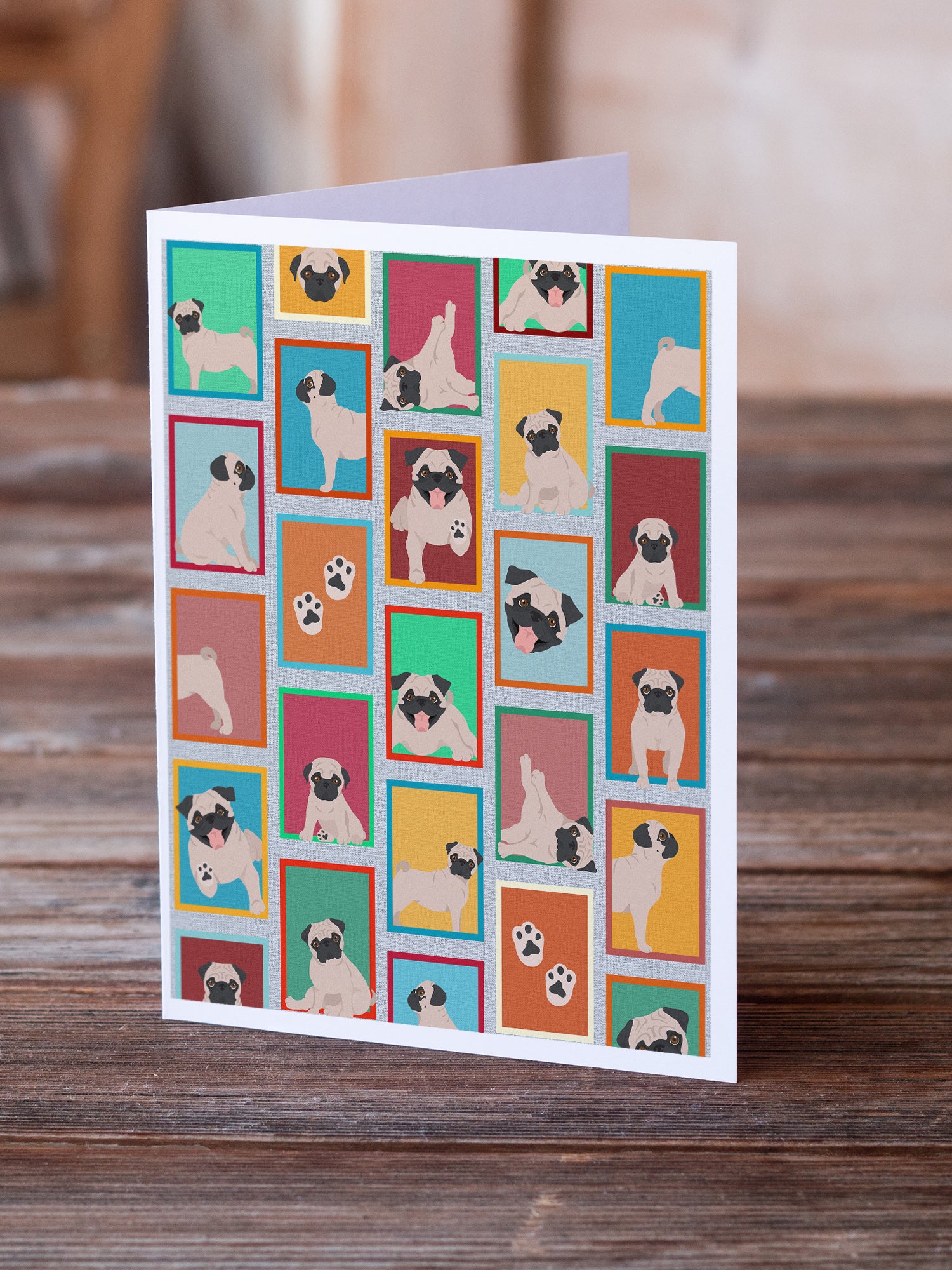 Lots of Fawn Pug Greeting Cards Pack of 8