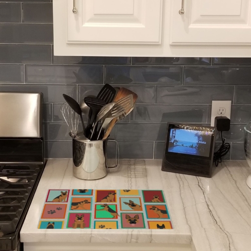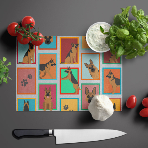 Glass Cutting Board featuring breed specific German Shepherd artwork. Introduce your kitchen to the vibrant, large Decorative Glass Cutting Board from Caroline’s Treasures. Crafted from resilient tempered glass, this board is not only a utilitarian necessity but also a colorful art piece. With its generous dimensions of 15 inches in height and 12 inches in length, it offers ample space for all your cutting needs. Every piece showcases captivating artwork from distinguished artists, bringing an aesthetic edge to your kitchen. Beyond its attractive design, this cutting board ensures your countertop stays pristine and unscathed, owing to its heat-resistant properties. Engineered with user convenience in mind, it features non-skid feet for stability, and rounded corners for additional safety. Its robust construction renders it virtually unbreakable, guaranteeing longevity. The board comes with protective feet bumpers, maintaining its position during use. This product is recommended to be hand washed only. Proudly printed and assembled in the United States, this cutting board exemplifies superior craftsmanship. With Caroline’s Treasures’ Decorative Glass Cutting Board, you’re investing in a blend of functionality and artistic flair.