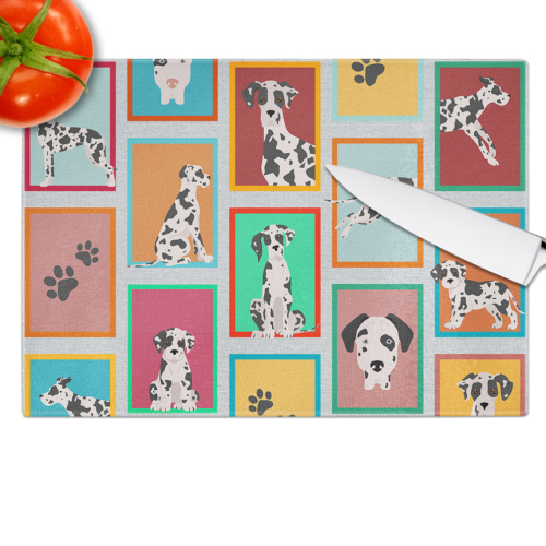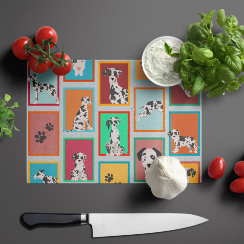 Glass Cutting Board featuring breed specific Great Dane artwork. Introduce your kitchen to the vibrant, large Decorative Glass Cutting Board from Caroline’s Treasures. Crafted from resilient tempered glass, this board is not only a utilitarian necessity but also a colorful art piece. With its generous dimensions of 15 inches in height and 12 inches in length, it offers ample space for all your cutting needs. Every piece showcases captivating artwork from distinguished artists, bringing an aesthetic edge to your kitchen. Beyond its attractive design, this cutting board ensures your countertop stays pristine and unscathed, owing to its heat-resistant properties. Engineered with user convenience in mind, it features non-skid feet for stability, and rounded corners for additional safety. Its robust construction renders it virtually unbreakable, guaranteeing longevity. The board comes with protective feet bumpers, maintaining its position during use. This product is recommended to be hand washed only. Proudly printed and assembled in the United States, this cutting board exemplifies superior craftsmanship. With Caroline’s Treasures’ Decorative Glass Cutting Board, you’re investing in a blend of functionality and artistic flair.