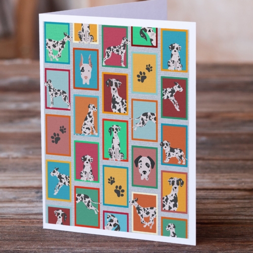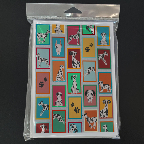 Lots of Harlequin Natural Ears Great Dane Greeting Cards Pack of 8