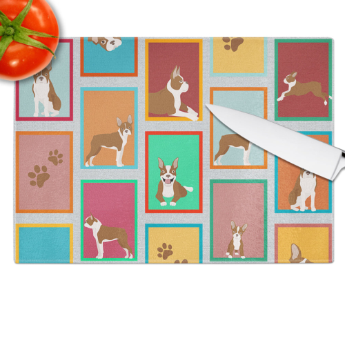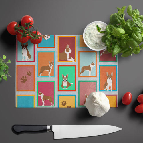Glass Cutting Board featuring breed specific Boston Terrier artwork. Introduce your kitchen to the vibrant, large Decorative Glass Cutting Board from Caroline’s Treasures. Crafted from resilient tempered glass, this board is not only a utilitarian necessity but also a colorful art piece. With its generous dimensions of 15 inches in height and 12 inches in length, it offers ample space for all your cutting needs. Every piece showcases captivating artwork from distinguished artists, bringing an aesthetic edge to your kitchen. Beyond its attractive design, this cutting board ensures your countertop stays pristine and unscathed, owing to its heat-resistant properties. Engineered with user convenience in mind, it features non-skid feet for stability, and rounded corners for additional safety. Its robust construction renders it virtually unbreakable, guaranteeing longevity. The board comes with protective feet bumpers, maintaining its position during use. This product is recommended to be hand washed only. Proudly printed and assembled in the United States, this cutting board exemplifies superior craftsmanship. With Caroline’s Treasures’ Decorative Glass Cutting Board, you’re investing in a blend of functionality and artistic flair.