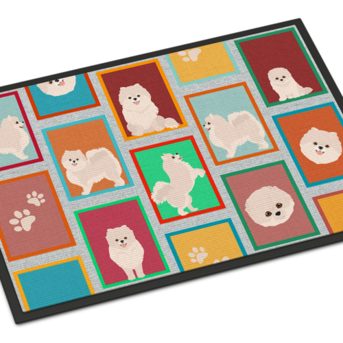 Doormat featuring breed specific Pomeranian artwork. Welcome your guests in style with our Artwork Door Mat, designed to withstand almost any weather condition. This mat, measuring approximately 24 by 36 inches, is held together by durable black binding tape. Its top layer, composed of polyester felt, is dyed with the eye-catching image you see on the mat. A few layers below provide the mat with stability, while its rubber bottom is stamped to help prevent slipping and ensures safety. Our mat works wonderfully as both an indoor or outdoor door mat. For cleaning, simply hose it off with water or use a power washer – no need for any cleaner that produces suds. Avoid scrubbing with a brush, instead, opt for the vacuum on floor setting. Designed manufactured and printed in the USA, this mat is a perfect addition to your porch, outdoor kitchen, entryway, or any indoor space. Its unique design makes it a charming decorative rug that greets your guests and adds a stylish touch to your home decor.