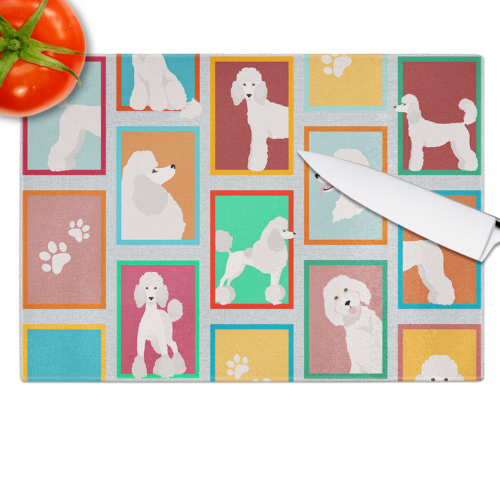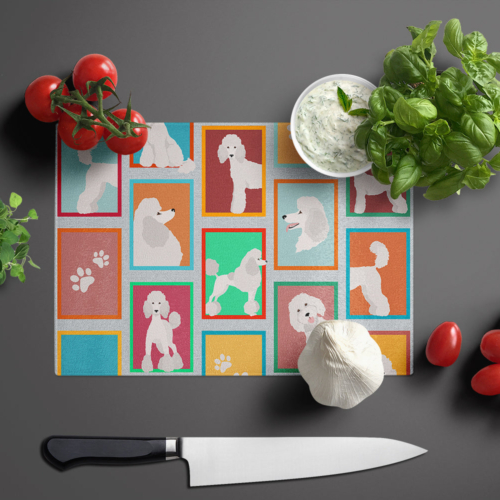 Glass Cutting Board featuring breed specific Poodle artwork. Introduce your kitchen to the vibrant, large Decorative Glass Cutting Board from Caroline’s Treasures. Crafted from resilient tempered glass, this board is not only a utilitarian necessity but also a colorful art piece. With its generous dimensions of 15 inches in height and 12 inches in length, it offers ample space for all your cutting needs. Every piece showcases captivating artwork from distinguished artists, bringing an aesthetic edge to your kitchen. Beyond its attractive design, this cutting board ensures your countertop stays pristine and unscathed, owing to its heat-resistant properties. Engineered with user convenience in mind, it features non-skid feet for stability, and rounded corners for additional safety. Its robust construction renders it virtually unbreakable, guaranteeing longevity. The board comes with protective feet bumpers, maintaining its position during use. This product is recommended to be hand washed only. Proudly printed and assembled in the United States, this cutting board exemplifies superior craftsmanship. With Caroline’s Treasures’ Decorative Glass Cutting Board, you’re investing in a blend of functionality and artistic flair.