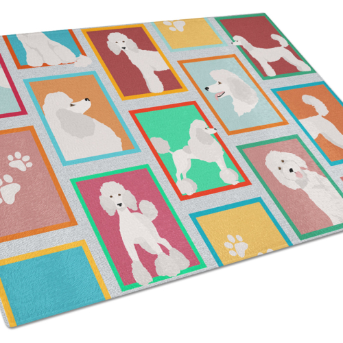 Glass Cutting Board featuring breed specific Poodle artwork. Introduce your kitchen to the vibrant, large Decorative Glass Cutting Board from Caroline’s Treasures. Crafted from resilient tempered glass, this board is not only a utilitarian necessity but also a colorful art piece. With its generous dimensions of 15 inches in height and 12 inches in length, it offers ample space for all your cutting needs. Every piece showcases captivating artwork from distinguished artists, bringing an aesthetic edge to your kitchen. Beyond its attractive design, this cutting board ensures your countertop stays pristine and unscathed, owing to its heat-resistant properties. Engineered with user convenience in mind, it features non-skid feet for stability, and rounded corners for additional safety. Its robust construction renders it virtually unbreakable, guaranteeing longevity. The board comes with protective feet bumpers, maintaining its position during use. This product is recommended to be hand washed only. Proudly printed and assembled in the United States, this cutting board exemplifies superior craftsmanship. With Caroline’s Treasures’ Decorative Glass Cutting Board, you’re investing in a blend of functionality and artistic flair.