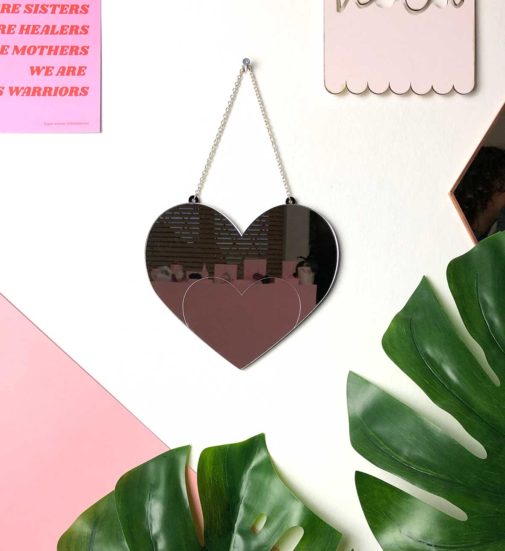 LOVE heart mirror, our latest addition to our wall decor are so fun and lightweight as they are made from Acrylic perspex. Perfect for adding a fun touch to any room in the modern home. Make a statement with these unique pieces designed by us at Doodlemoo. Our heart mirror hangs at 12cms and comes in a beautiful eco black box.