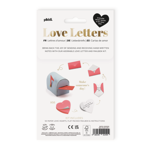 Share little notes with the people you love. 50 blank heart notes for your own messages and DIY mailboxBring back the joy of sending and receiving handwritten notes with our adorable love letters and mailbox kit. Whether its a message for a special occasion such as an anniversary, birthday or Mothers Day or just to let someone you care for know you are thinking of them, these mini notes and easy to construct mailbox will be sure to make someone’s day. Why not gift a mailbox to a loved one and keep one for yourself and rediscover the art of letter writing as you send notes back and forth. Simply follow the step by step printed instructions included, or follow along with the video Responsibly made using carefully selected FSC paper from well managed forests, 100% plastic-free packaging and printed with soy based ink.