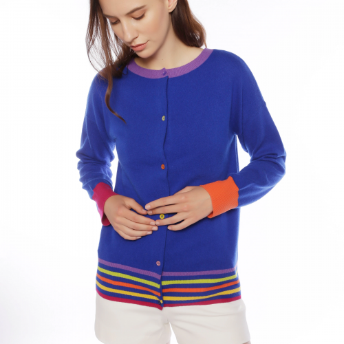 Wear it as a crew or a cardi. The Lucia is a reversible style that can be worn as a crew or reversed back to front and worn as a cardigan with functional buttons. Once undone this can be draped over the shoulder making it the perfect style for those cooler evenings. Available in black, deep blue sea and oatmeal.