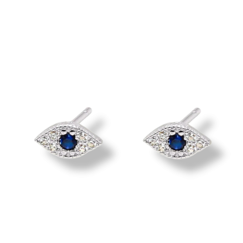DESCRIPTION Get sparkle and some positive energy with the Lucky Evil Eye Stud Earrings. Crafted from hallmarked 925 sterling silver with finishes in silver or plated 18ct gold, each with blue and white cubic zirconia detailing. Subtle and delicate with lots of sparkle. Sold as a pair and butterfly backs included. Want the matching necklace? Check out the Lucky Evil Eye Gift Set here. SIZING Each earring measures approx. 7mm x 2mm. PACKAGING Delivered in a Gold Trip presentation box with foam insert, perfect for gifting yourself or others.