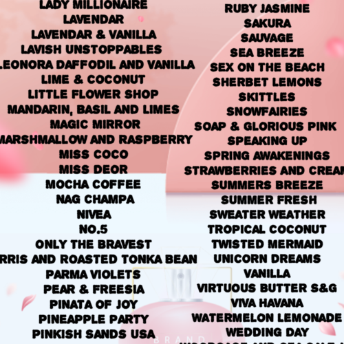 PLEASE SELECT YOUR FRAGRANCES FROM THE LISTS IN PICTURES THEN MESSAGE AT TIME OF ORDERING OR RANDOM TOP SELLING FRAGRANCES WILL BE SENT X