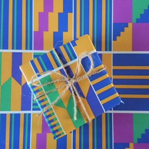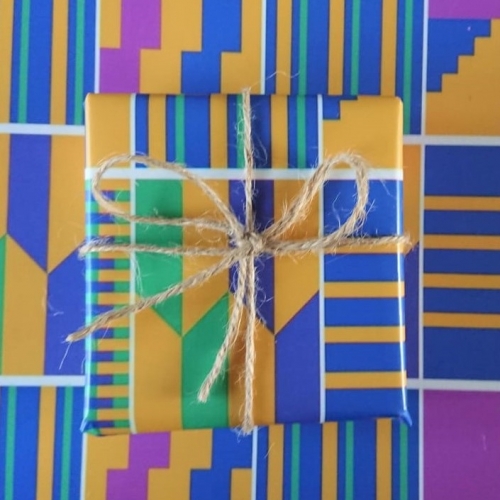 Traditionally worn by royalty for special ceremonies, the varied designs of kente cloth from Ghana have become synonymous with representations of African cultural wear. Our bright and colourful kente cloth style gift wrap is ideal for all occasions.