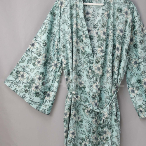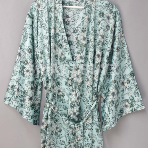 Luxury Satin Boho Kimono House Robe -Duck Egg Blue Black