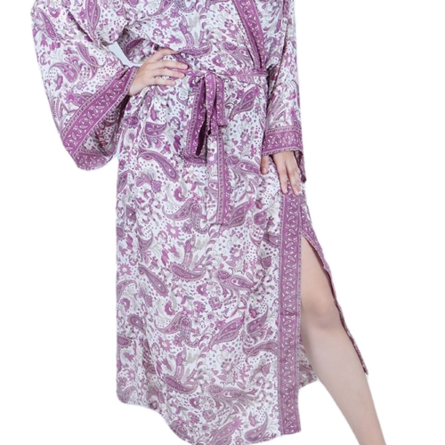 With a flowy, lightweight feel and a silky touch, this kimono is as comfortable as it is stylish, perfect for layering over dresses, jeans, or simply for lounging at home.