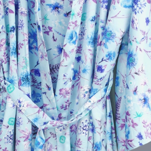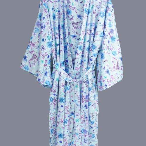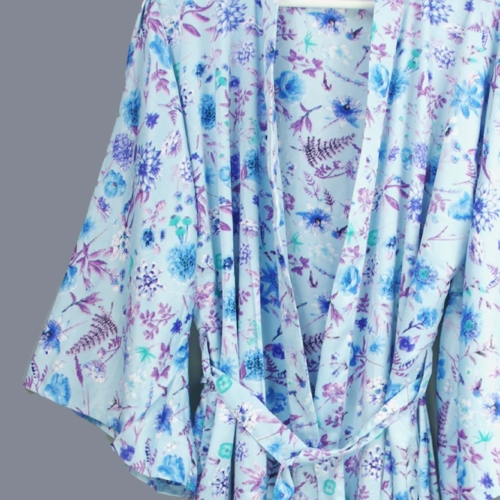 Luxury Satin Boho Kimono House Robe -Sky Blue Mist Floral