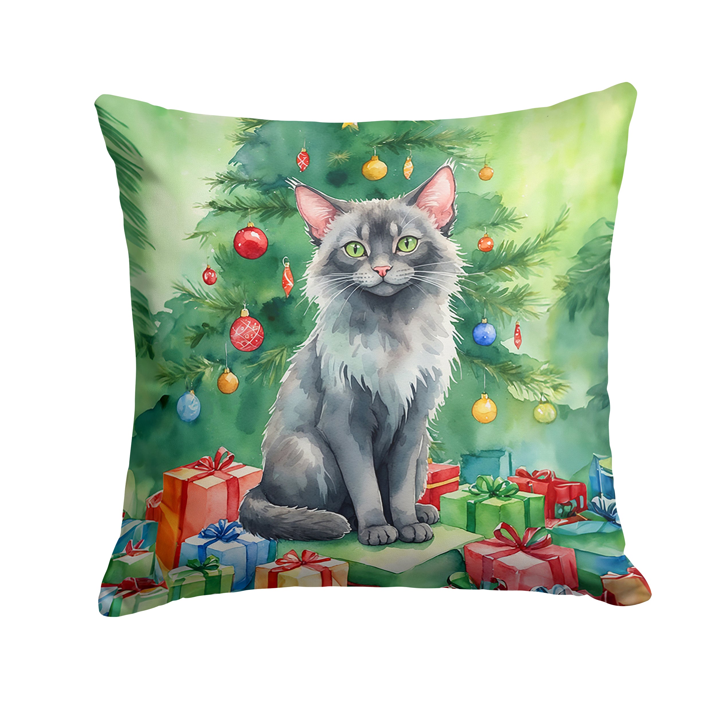 Throw Pillow featuring breed specific Lykoi artwork. Celebrate Christmas with this Christmas Pillow. Add a touch of vibrancy and comfort to your outdoor seating with Caroline’s Treasures Fabric Decorative Pillow. Measuring approximately 14 inches by 14 inches, this outdoor pillow is crafted to elevate the appeal of your patio furniture, infusing it with vivid color and artistic flair. The pillow includes a 100% Polyester Fabric sham filled with a quality pillow form to provide superior comfort. Innovatively made from our brand new material, specifically woven for its water resistance, this pillow is designed for durability. The soft canvas fabric offers versatility in use, fit for your indoor couch or your outdoor patio, porch, or veranda. The fabric is dyed with colorfast dyes built for resilience against weather conditions, ensuring the pillow retains its beauty over time. Constructed by sewing three fabric pieces to create a sham, the polyester insert is then nestled inside to form the pillow, resulting in an overstuffed pillow that maintains its shape. Both the sham and the pillow insert are proudly made in the United States. As the pillows are handcrafted, there may be minor variations in size, further enhancing their unique charm. Experience comfort in style with Caroline’s Treasures Fabric Decorative Pillow.