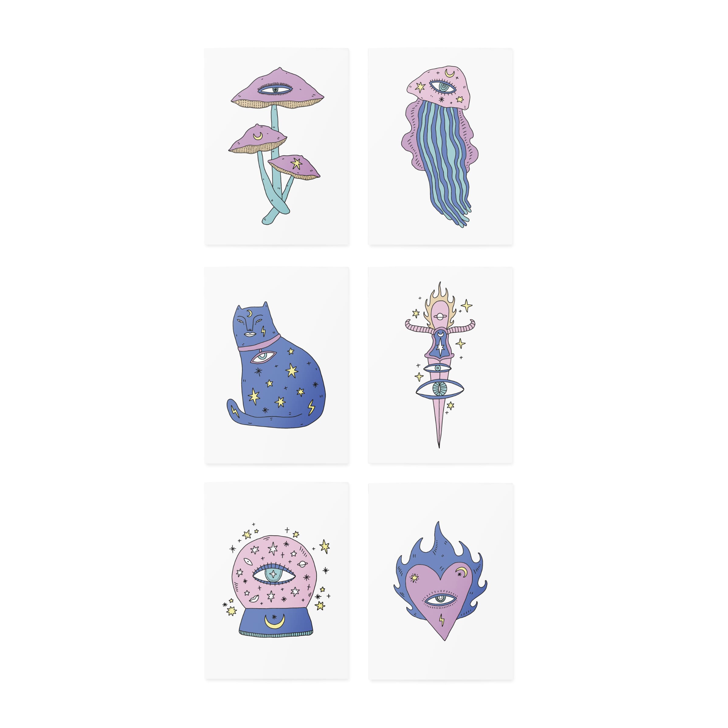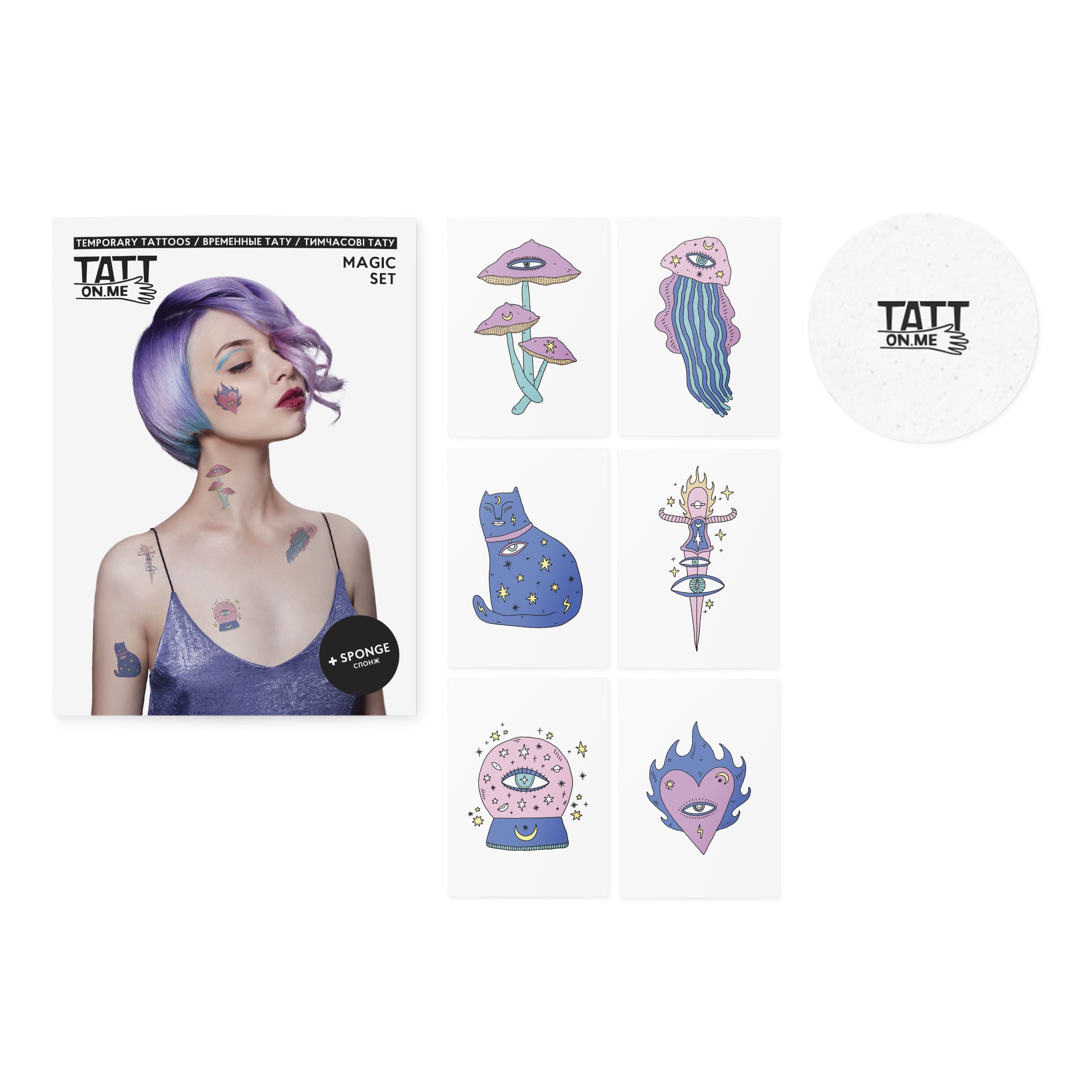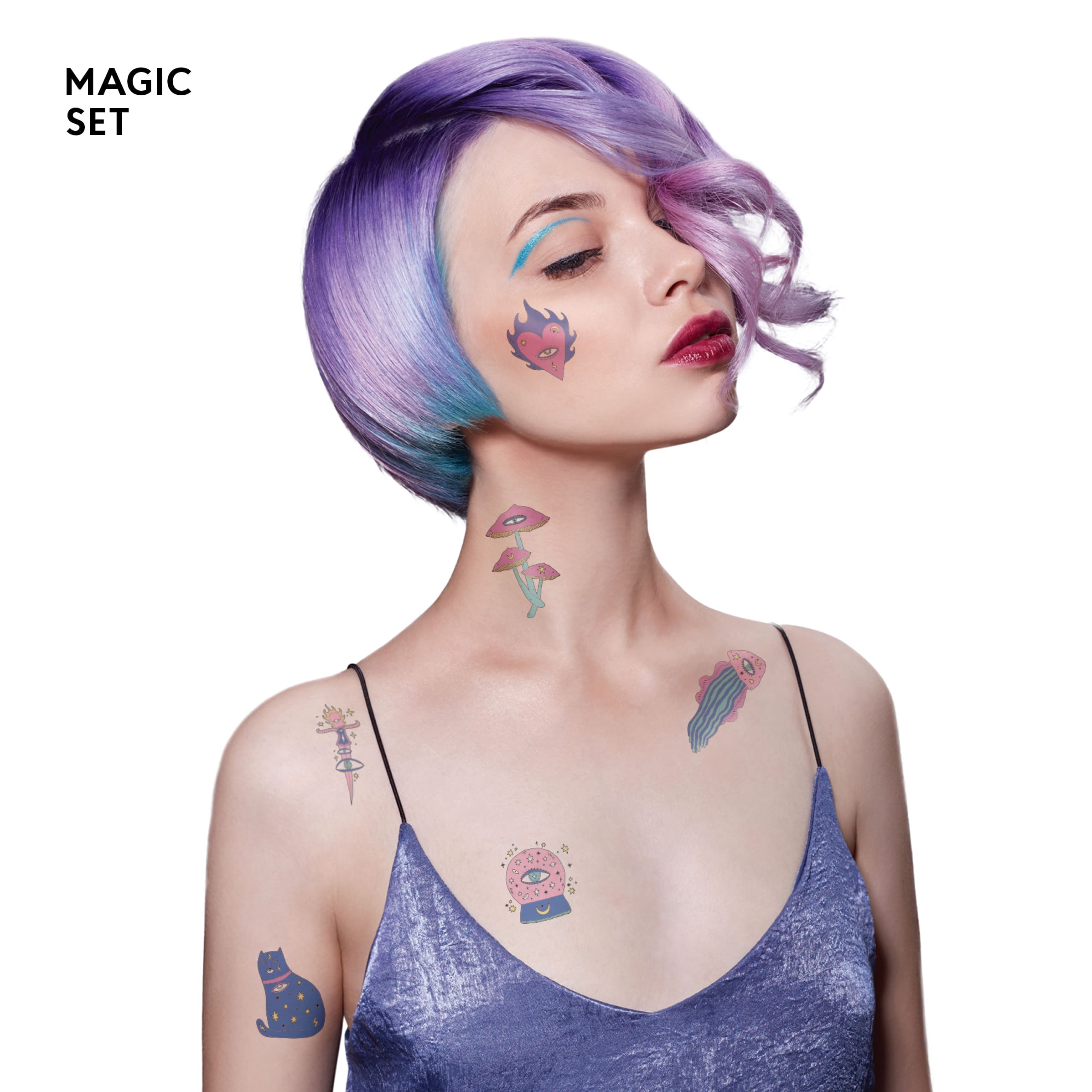 Being a witch is now legal and cool. And some mystery and magic to your style with our weird but sweet temporary tattoos. Don`t forget to share one or two with your friend! The set contains 6 separate tattoos and an application sponge.