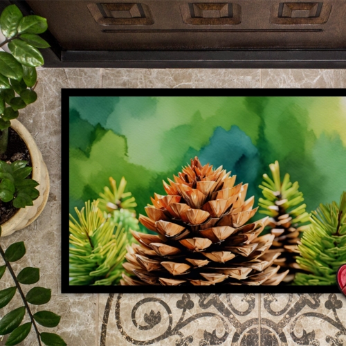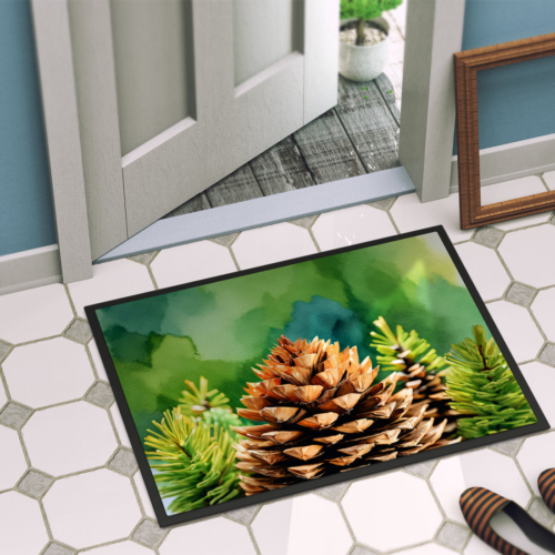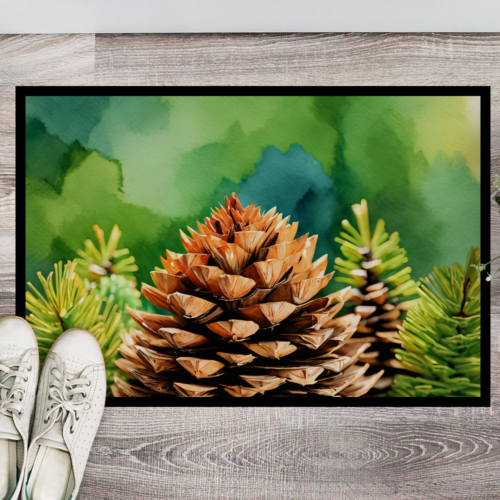 Doormat featuring breed specific Maine White Pine Cone and Tassels artwork. Welcome your guests in style with our Artwork Door Mat, designed to withstand almost any weather condition. This mat, measuring approximately 24 by 36 inches, is held together by durable black binding tape. Its top layer, composed of polyester felt, is dyed with the eye-catching image you see on the mat. A few layers below provide the mat with stability, while its rubber bottom is stamped to help prevent slipping and ensures safety. Our mat works wonderfully as both an indoor or outdoor door mat. For cleaning, simply hose it off with water or use a power washer – no need for any cleaner that produces suds. Avoid scrubbing with a brush, instead, opt for the vacuum on floor setting. Designed manufactured and printed in the USA, this mat is a perfect addition to your porch, outdoor kitchen, entryway, or any indoor space. Its unique design makes it a charming decorative rug that greets your guests and adds a stylish touch to your home decor.