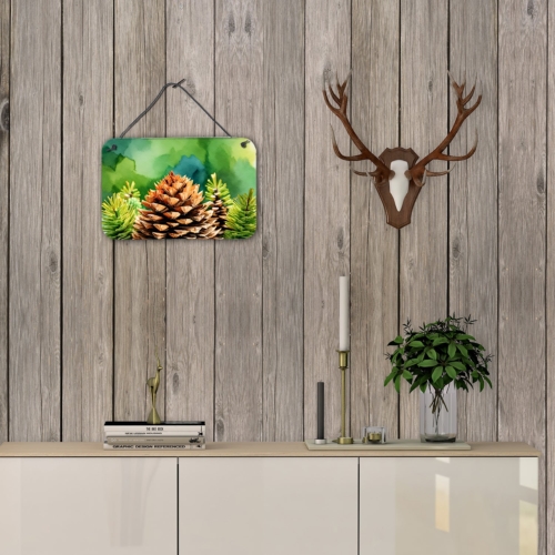 Maine White Pine Cone and Tassels in Watercolor Wall or Door Hanging Prints