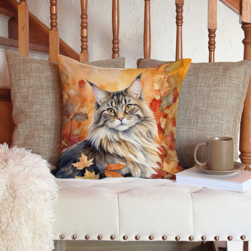 Throw Pillow featuring breed specific MaineCoon artwork. Celebrate Halloween with this Halloween Pillow. Add a touch of vibrancy and comfort to your outdoor seating with Caroline’s Treasures Fabric Decorative Pillow. Measuring approximately 14 inches by 14 inches, this outdoor pillow is crafted to elevate the appeal of your patio furniture, infusing it with vivid color and artistic flair. The pillow includes a 100% Polyester Fabric sham filled with a quality pillow form to provide superior comfort. Innovatively made from our brand new material, specifically woven for its water resistance, this pillow is designed for durability. The soft canvas fabric offers versatility in use, fit for your indoor couch or your outdoor patio, porch, or veranda. The fabric is dyed with colorfast dyes built for resilience against weather conditions, ensuring the pillow retains its beauty over time. Constructed by sewing three fabric pieces to create a sham, the polyester insert is then nestled inside to form the pillow, resulting in an overstuffed pillow that maintains its shape. Both the sham and the pillow insert are proudly made in the United States. As the pillows are handcrafted, there may be minor variations in size, further enhancing their unique charm. Experience comfort in style with Caroline’s Treasures Fabric Decorative Pillow.